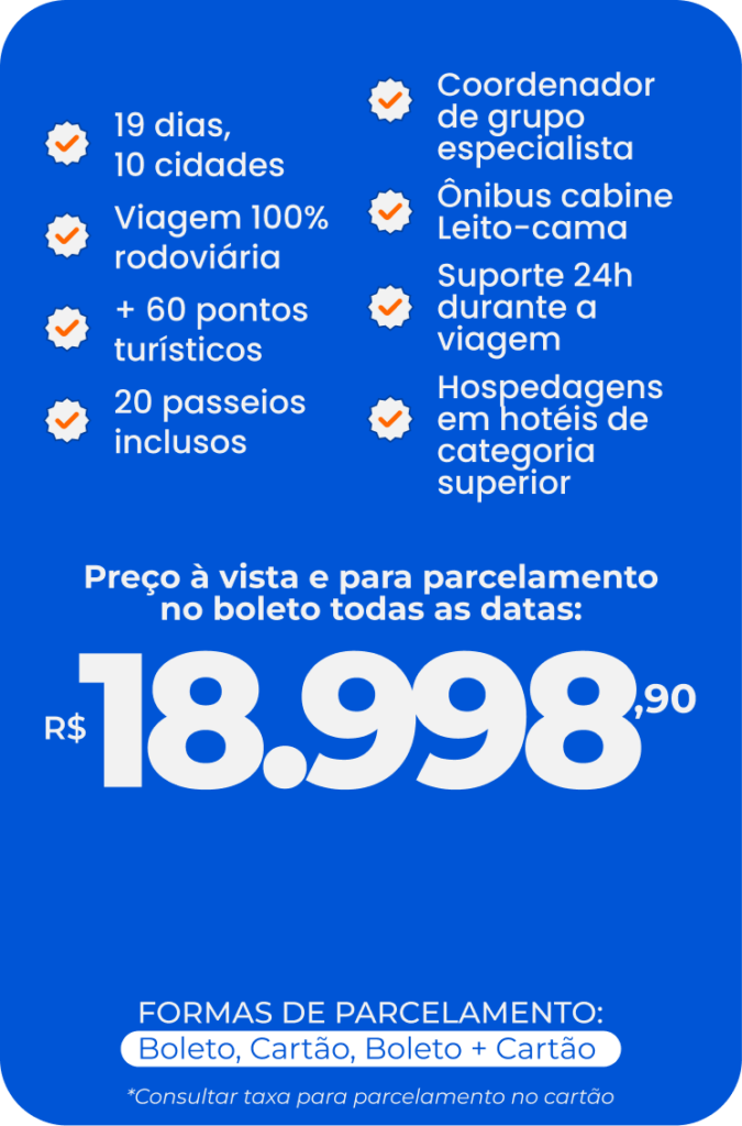 Com eles, você terá um roteiro rico em curiosidades e informações valiosas, além de todo o suporte necessário para que sua viagem seja perfeita.